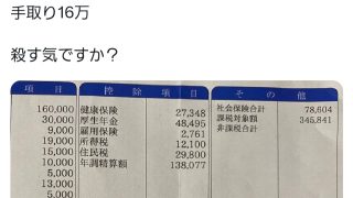 X民、42万円稼いだはずが手取りで16万円しか貰えずブチ切れる
