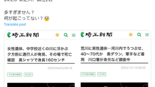 【画像あり】「治安が悪すぎる」川口市、3ヶ月間で4人の遺体が川に浮かんだ状態で発見される