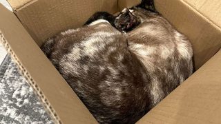 ニュー速 ダンボール箱を開けたらネコが居た! 飼い主が見てない隙に潜り込み、1000キロ先の倉庫で無事発見