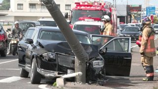 ニュー速 【画像】現行センチュリーが信号機に衝突。運転士、軽い怪我