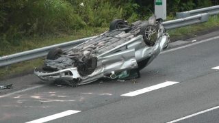 嫌儲 中央道下り談合坂あたりで車がひっくり返る事故