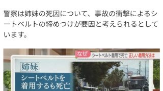 嫌儲 死亡の姉妹(7歳と5歳)。シートベルトに内臓を破壊されていた😰