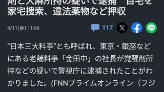 嫌儲 【懐石】安倍シンゾーが会食によく使っていた金田中、社長が薬物絡みで逮捕!