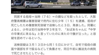 ニュー速 「『卒業式来るなよ』と言ったのに来て腹立った」 育ての親である婆さんを殴り殺した15歳少年逮捕