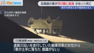 嫌儲 【修羅の国】 ヒャーハ-ッ!5人乗った軽自動車が河川敷に転落して1人死亡
