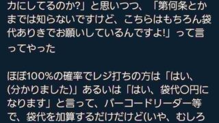 嫌儲 人「袋ください」レジ打ち店員(ヽ゜ん゜)「!」👉とつぜん発狂してしまう