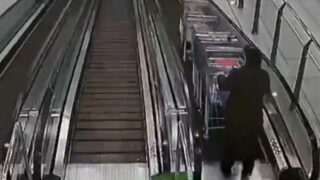 ニュー速 ロシアのスーパーでカートが女性客に激突、体が吹っ飛ばされる【動画】