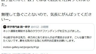 芸スポ 【話題】#ホリエ入店拒否で休業の「#四一餃子」ネット資金調達開始! 一気に500万円集まる 「#ひろゆき」1日店長権に10万支援