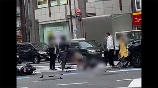 【動画有】右折ハイラックスとバイクが衝突し、男性死亡。ハイラックスの運転手はポケ手で降りてくる