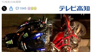 【高知】バイク同士で衝突、大学生(26)と会社員(40)の2人死亡…2台とも大破、右折・直進で衝突の右直事故か 南国市