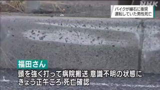 バイク乗り男性、道路脇の縁石にタイヤをちょっと擦っただけで死亡⚰