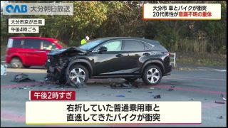 【大分】車とバイクが衝突 バイクの男性(20代)が意識不明の重体