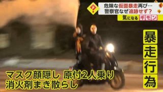 【福岡伝説】「バッチバチです!」仮面の2人組が原付バイクで暴走 やじ馬500人集まる 事故懸念で警察は追跡せず