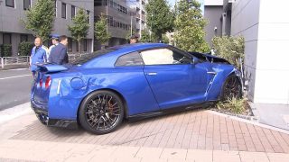 高級ースポーツカー「GTR」とミニバンの右直事故 弾みでGTRがマンションの壁に激突