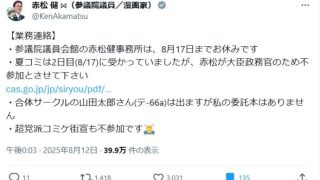 芸スポ 夏コミは「政務官のため不参加」 赤松健氏の欠席理由が「前代未聞」と話題