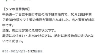 なんG 岩手銀行本店地下駐車場にクマが侵入し現在立てこもり中!!!