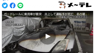 ニュー速+ 【名古屋】スポーツカーがガードレールに衝突・炎上 運転の男性死亡 同乗の女性軽傷