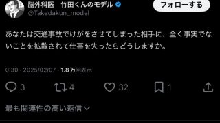 なんG 脳外科医 竹田くんのモデル「事故の相手に事実でないことを拡散され仕事を失ったらどうしますか?」