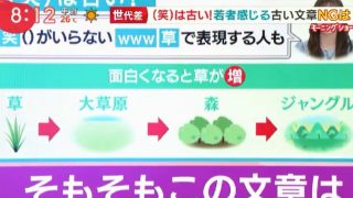 なんJ モーニングショー「(笑)はもう古い、最近の若者は『草』や『ジャングル』を使う」