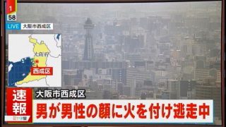 大阪西成区で男が男性の顔に火をつけ逃走(※誹謗中傷及び侮辱レス禁止)