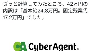 嫌儲 サイバーエージェントが初任給42万円に→固定残業代17万円(どれだけ残業しても増えない)含むことが判明