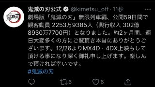 嫌儲 劇場版「鬼滅の刃」無限列車編、公開59日間で興行収入302億達成
