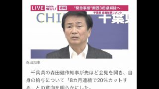 ニュー速+ 【千葉県知事】千葉県・森田知事、給与8カ月連続で20%カット「県民のご苦労を多少なりとも共有していく」