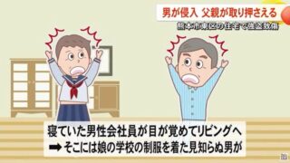 目覚めたら娘の学校の制服を着た男と鉢合わせ 父親が男を取り押さえる 岡崎 健太(37)逮捕