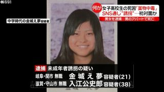ニュー速+ 女子高生(19)を誘拐した疑いで金城え夢(21)を逮捕 女子高生は死亡
