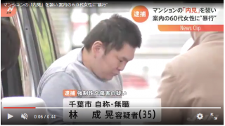 マンション内見を装い、60代女性に強制性交しようとした林成晃(35)を逮捕!