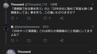 嫌儲 【悲報】カオナシ「「清掃員である事を笑う」と「20年会社に勤めて昇進も無く清掃員をしてる事を笑う」、この違いわかりませんか?」