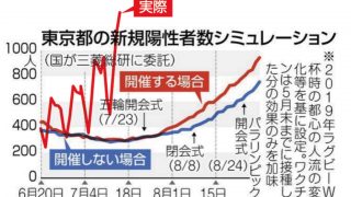 オリンピックを開催する場合としなかった場合のシンクタンクの感染者数のシミュレーションがマジで凄いと話題に