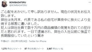 ツイッター釣具屋さん 強盗の前科者を雇って自宅を放火される
