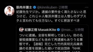 嫌儲 唐澤弁護士「立花孝志さんの逮捕で喜ぶ人は推定無罪を知らないの?」