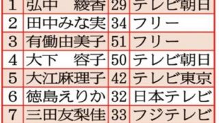 女子アナは熟女の時代へ 3位有働アナ、4位は大下アナ…トップ10に20代は3人のみ