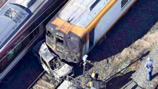 嫌儲 近鉄京都線の特急列車と衝突した車が炎上、特急にも燃え移る…乗客100人は避難しけが人なし