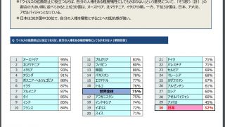 【国際調査】「ウイルスの拡散防止に役立つならば、自分の人権をある程度犠牲にしてもかまわない」 日本は30か国中…