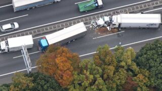 嫌儲 圏央道 軽が前後から潰され2人死亡 追突の大型貨物を逮捕