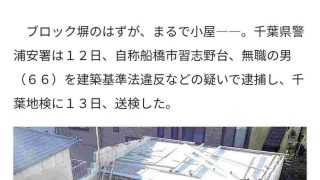 無職「ブロック塀を作りました」 市役所「小屋ですね」 →逮捕