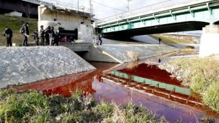 ニュー速+ 【社会】京都・鴨川の水が真っ赤に 原因調査中、水門から大量の赤い液体が流入