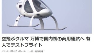 ニュー速 大阪万博の目玉、「空飛ぶクルマ」終了のお知らせwwwwwwwww