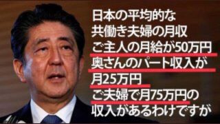 嫌儲 【悲報】安倍晋三「夫が50万、妻がパートで25万、計75万円の世帯所得が日本の平均」