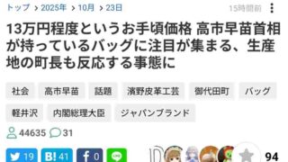 嫌儲 高市早苗が持っているバッグ、13万円程度のお手軽価格だと判明し話題 ケンモメンはいくらのバッグ使ってる?