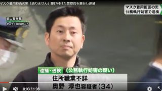 嫌儲 【例のマスクマン】千葉の飲食店でマスクせずに暴れ警察官ぶん殴った奥野淳也(34)再逮捕wwwww