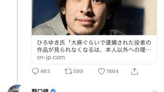 嫌儲 【朗報】ひろゆき、ネトウヨ登山家の野口健をロリコン煽りでノックアウト、相手はツイ消し逃亡