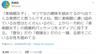 女さん激怒「美術館女子?女の趣味を舐めるな!!!」