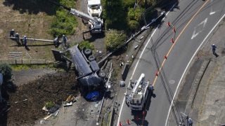【群馬】カーブを曲がりきれなかった大型トラック、対向車線の電柱に衝突。運転していた男性(57)は死亡。860軒が停電