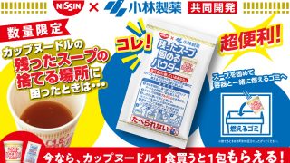 VIP 日清食品と小林製薬が共同開発!カップ麺の残り汁“10秒で固まる” パウダー。そのまま燃えるごみに