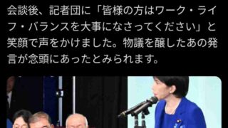 高市早苗、早くも謝罪!「ワークライフバランスは大切です」ワークライフバランス必要無い民、死亡