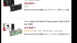 RadeonRX9060XT(16GB)大幅値上げで平均価格9万円になりミドルスペックパソコン終了してしまう